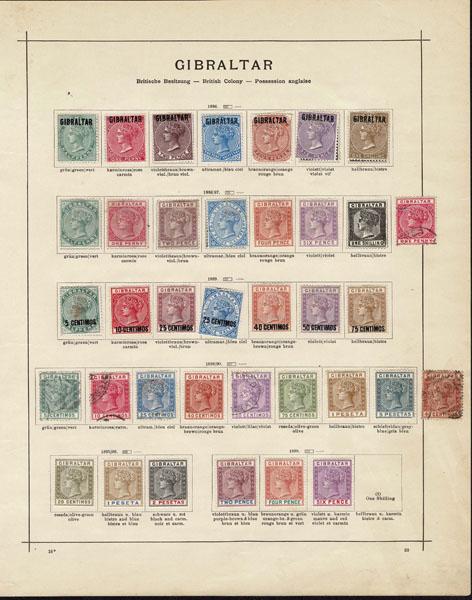 BRITISH EAST EUROPE: 1860's to 1910 Collection of 233 stamps on old-time Schaubek album pages, comprising Gibraltar including 1st issue , o.g. and others etc. Heligoland, some higher catalogue items; Ionian Islands 1-3. Malta, Cyprus, better plates; St. Helena nice overprints, some stuck down by old time hinges (should not effect used stamps) mixed condition. Better than normal groups.