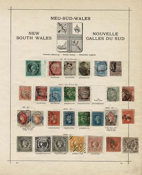 AUSTRALIAN STATES; 1849 to 1910 Collection of several hundreds primarily used stamps, on old-time Schaubek album pages, some stuck down by old-time hinges (should not affect used stamps) chance to acquire many hard to find under-valued classics, condition mixed, well worth the effort.