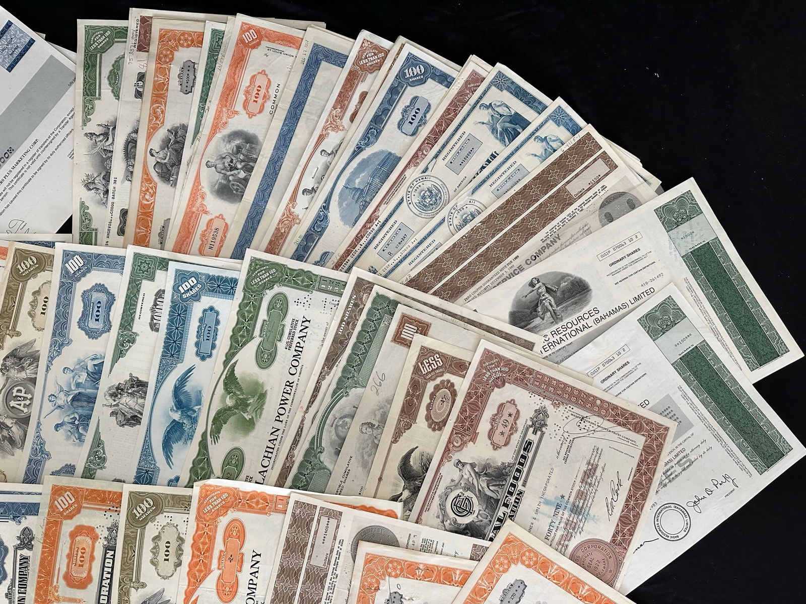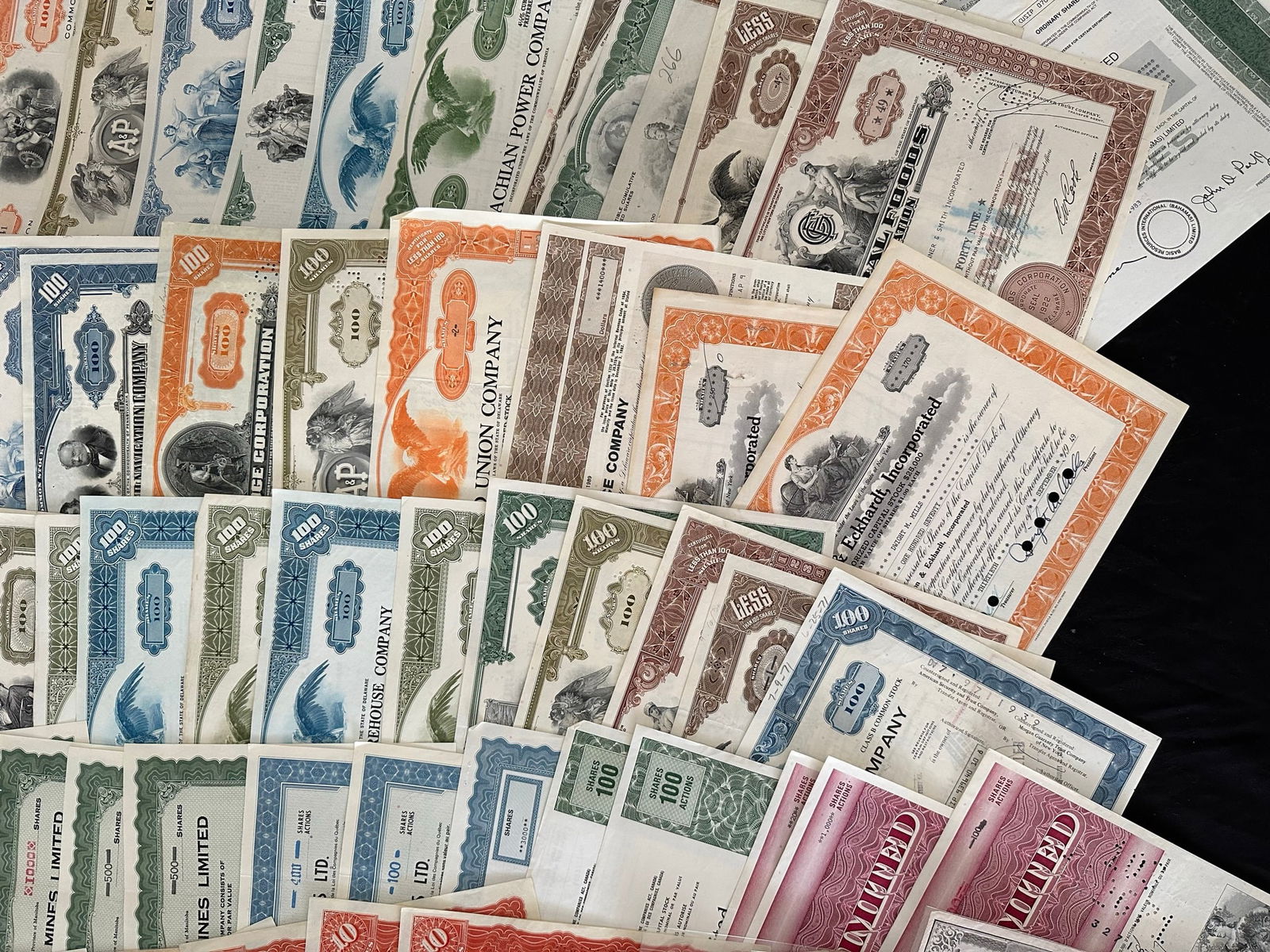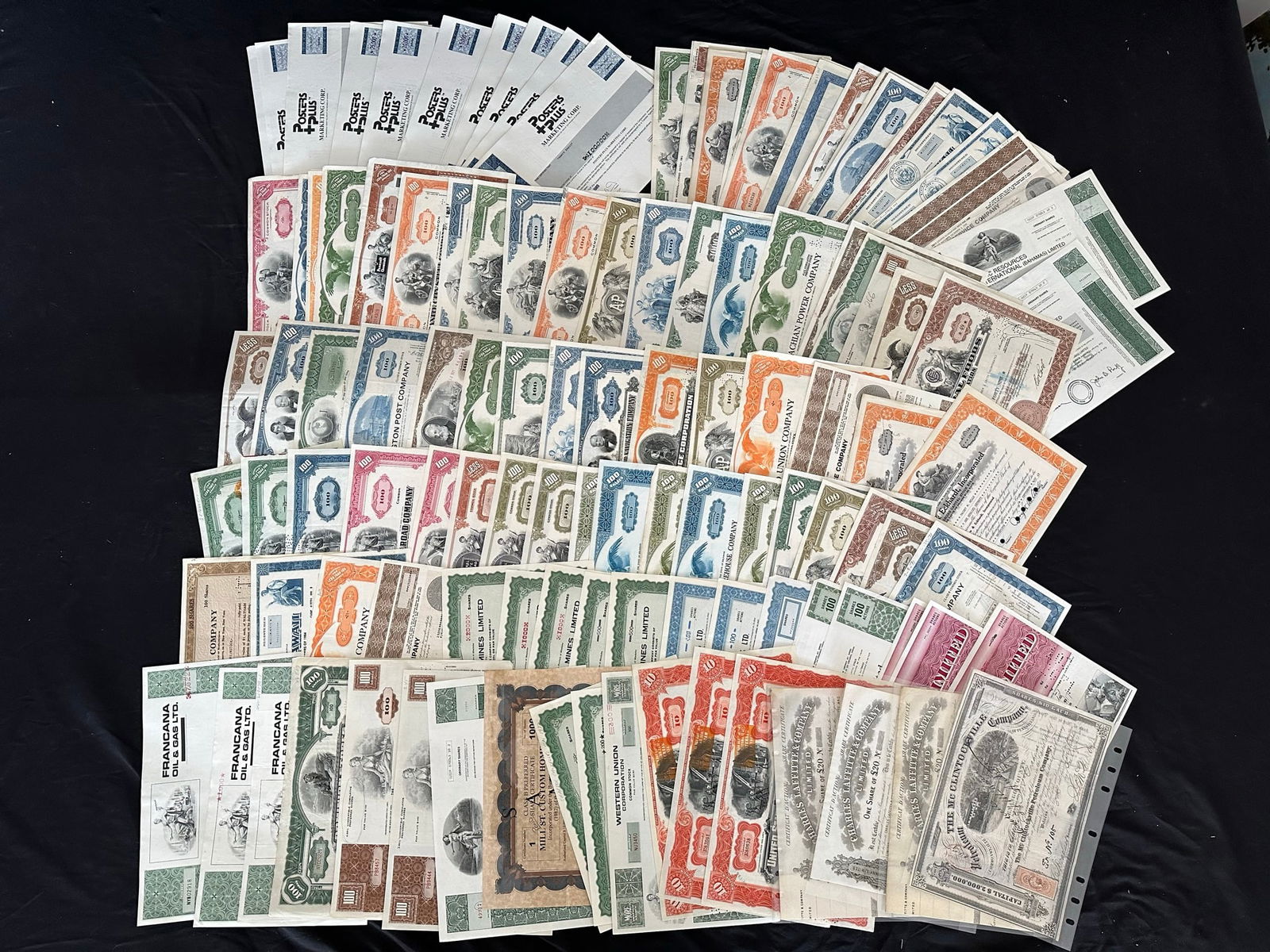 USA stock certificate collection consists of 155 stock certificates, with many highlights including one certificate stamped with a USA internal revenue stamp, and many notable corporations"s stock certificates including the preferred stocks of US Steel Corporation (1935),Western Union, and much more. The stocks feature beautiful artistic designs, and are a throwback to when hard copy stock certificates were used (compared to today's computer documentation). The certificates have great historical content, and relate to the financial challenges that existed during depressed circumstances and thus a a great collectable. (Image 1)(Image 2)(Image 3)(Image 4)(Image 5)(Image 6)(Image 7)(Image 8)(Image 9)(Image 10)