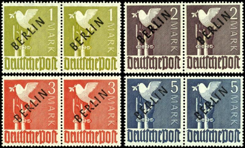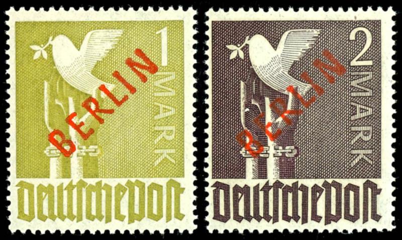 2 Pfennig to 5 Mark black overprint, horizontal pair, 1 Mark in a-color, mint never hinged, flawless condition, photo certificate Hans-Dieter Schlegel BPP \The quality is impeccable.\ (1/20(2)) Certificate 2 Pfennig bis 5 Mark Schwarzaufdruck, waagerechter Paarsatz, 1 Mark in a-Farbe, postfrisch, tadellose Erhaltung, Fotoattest Hans-Dieter Schlegel BPP \Die Qualität ist einwandfrei.\ (Image)