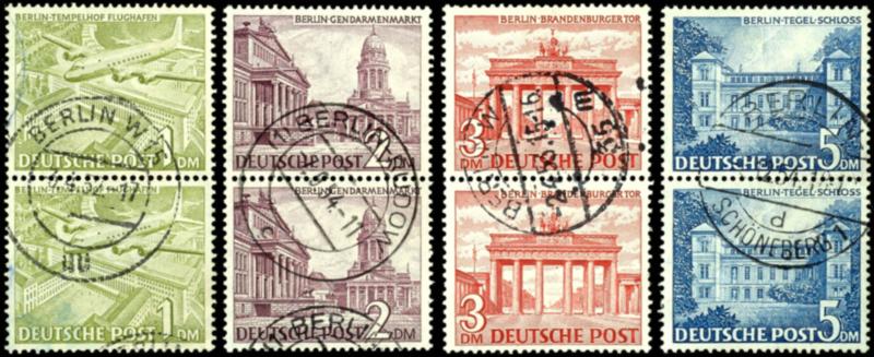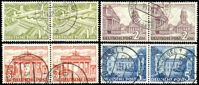 1 Pfennig to 5 Mark buildings (I), complete set in horizontal pairs, used, 2 Mark, 3 Mark and 5 Mark nibbed perforation, 3 Mark and 5 Mark color flaws, otherwise flawless condition, photo certificate Hans-Dieter Schlegel BPP, Michel 1. 010.- (previous bid 150) (42/60(2)) Certificate 1 Pfennig bis 5 Mark Bauten (I), kompletter Satz in waagerechten Paaren, gestempelt, 2 Mark, 3 Mark und 5 Mark kurze Zähne, 3 Mark und 5 Mark Farbspuren, sonst tadellose Erhaltung, Fotoattest Hans-Dieter Schlegel BPP, Mi. 1.010.- (alter Ausruf 150) (Image)