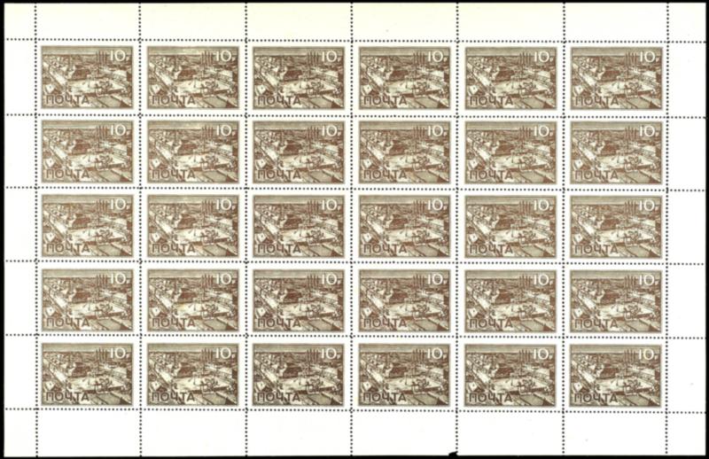 1943, Wlassow-Armee, 10 Rubel Höchstwert im kompletten Original-Bogen zu 30 Stück tadellos postfrisch mit vollem Originalgummierung. Komplette Bögen sind äußerst selten und dann meist ohne Gummi! Als postfrischer Originalbogen sehr selten!