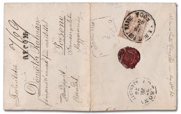 The 1kr lithographed was not intended to be issued in lilac gray to avoid confusion with the 25kr that was printed in shades of violet. Sheets that had already been printed were invalidated with blue crayon. Only a few genuinely used examples are known—this is only the second full cover recorded.(Image)