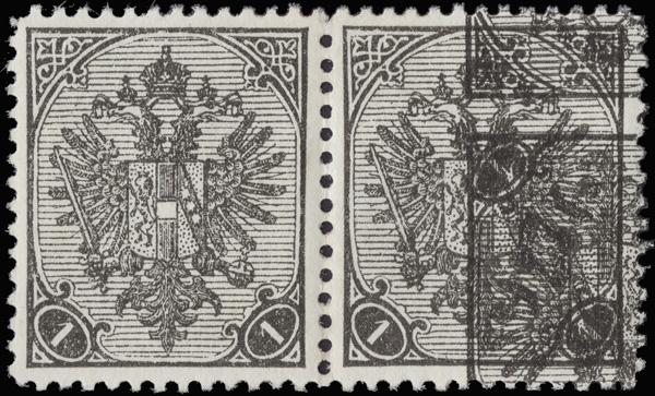 1900, New Currency, 1h black, perf 12½ double impression (Scott 11 var.), the right stamp in a pair with a normal, o.g., never hinged, Extremely Fine, signed Ferchenbauer, with his 1998 attest. Michel 10 DD. Ferchenbauer 10 var.; €900+ ($970). Michel €900+ ($970). (Image)