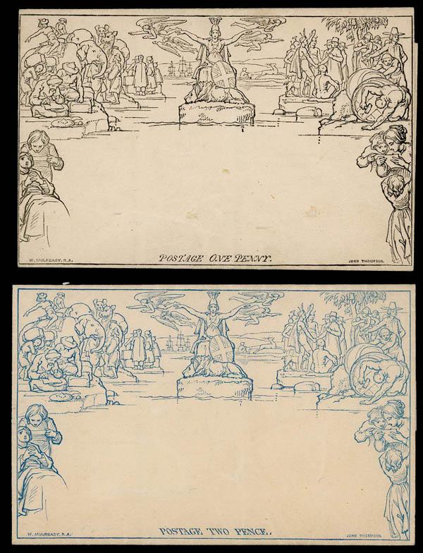 1840, Mulready Letter Sheets, 1d black & 2d blue, bright colors, light wrinkles, fresh F.-V.F. Scott U3-U4 $875 (Photo). US$0 (Image)