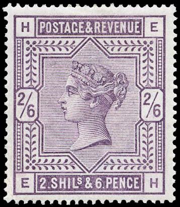 Great Britain, 1883, Queen Victoria, 2s6d lilac on white paper, Anchor watermark (Scott 96. SG 178), nicely centered, with margins well clear of the design on all sides, and quite fresh, o.g., hinged, almost Very Fine. Scott $875. SG £600 ($770). Estimate $150 - 200. Scott $875 Suggested Bid $150-200 (Image)
