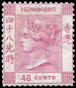 Hong Kong, 1865, Queen Victoria, 48¢ rose carmine, Crown CC watermark (Scott 21. SG 17a. Yang 17a), o.g., hinged, Fine. Scott $1,325. SG £1,100 ($1,410). Estimate $250 - 350. Scott $1,325 Suggested Bid $250-350 (Image)