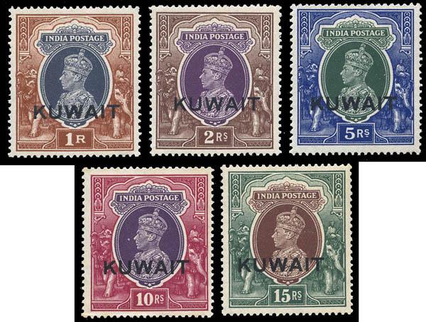 Kuwait, 1939, King George VI, ½a to 15r complete (Scott 45-57. SG 36/51), set of 13, o.g., mostly very lightly hinged, mostly Very Fine. Scott $248. Estimate $75 - 100. Scott $248 Suggested Bid $75-100 (Image)