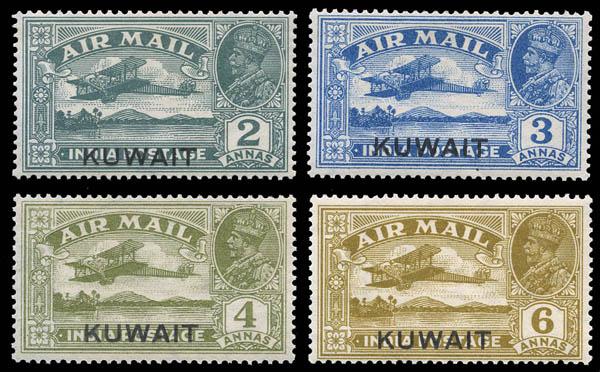Kuwait, Airmail, 1933-34, First Issue complete (Scott C1-C4. SG 31/34), set of 4, o.g., lightly hinged, Fine to Very Fine. Scott $197. Estimate $60 - 80. Scott $197 Suggested Bid $60-80 (Image)