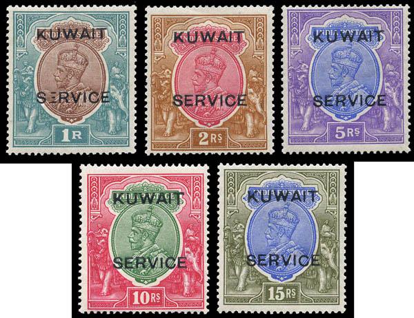 Kuwait, Officials, 1923-24, King George V, ½a to 15r complete (Scott O1-O14. SG O1/O14), o.g., hinged, Fine to Very Fine. Scott $939. SG £850 ($1,090). Estimate $300 - 400. Scott $939 Suggested Bid $300-400 (Image)
