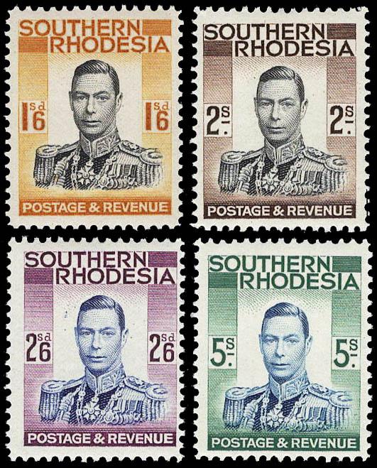 Southern Rhodesia, 1937, King George VI, ½d to 5s complete (Scott 42-54. SG 40/52), set of 13, o.g., never hinged, Very Fine. Scott $85. SG £85 ($110). Estimate $30 - 40. Scott $85 Suggested Bid $30-40 (Image)