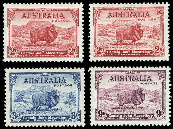 Australia, 1934, Macarthur complete (Scott 147-149, 147a. SG 150/152, 150a), set of 4 including the 2d Die II, o.g., never hinged, Very Fine. Scott $134 for n.h. SG £81 for hinged ($100). Estimate $40 - 60. Scott $134 for n.h. Suggested Bid $40-60 (Image)