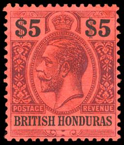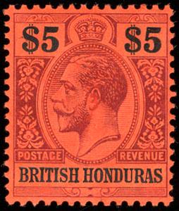 British Honduras, 1913-17, King George V, 1¢-$5 complete. O.g., lightly hinged ($5 looks n.h.), a Very Fine set. SG No. 101/10. Scott No. 75-84; $472. US$0 (Image)