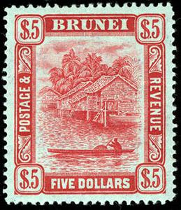 Brunei, 1907-21, Brunei Scene, 1¢-$5 complete. Set of 26, o.g., rich vibrant colors throughout, a Very Fine set. SG No. 23/50 £845 ($1,060). Scott No. 13-39; $652. US$0 (Image)