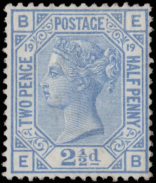 1880, Queen Victoria, 2½d blue, Orb watermark (Scott 68), plate 19, regummed, exceptionally well centered, Very Fine. SG 142; £575 for o.g. ($770). Scott $550 for o.g. (Image)