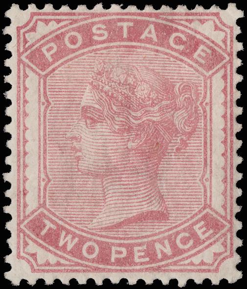1880, Queen Victoria, 2d pale rose, Imperial Crown watermark (Scott 81), o.g., very lightly hinged, unusually fresh and decently centered, Fine to Very Fine. SG 168; £350 ($470). Scott $400. (Image)