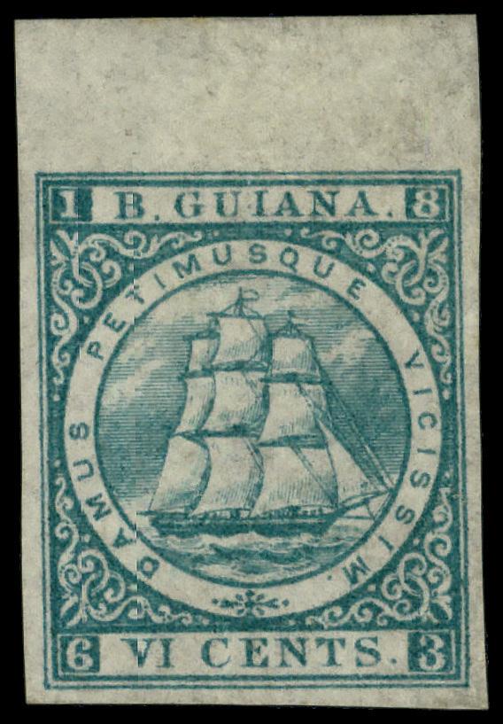 1863, 6c blue (Scott 64P), top margin single, without gum as issued, Very Fine. (Image)
