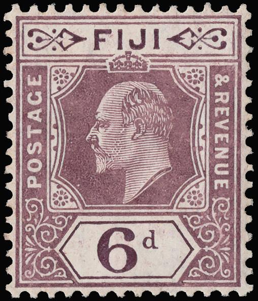 1910, King Edward VII, 6d dull purple, damaged frame & crown (Scott 74 var.), watermarked Multiple Crown CA, o.g., lightly hinged, fresh and perfectly centered; with just a bit of faint gum toning visible on the reverse only, still Very Fine. This variety is unlisted on the 6d multiple Crown CA watermark. SG 121 var. (Image)