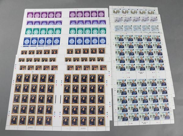 British Asia & Antarctic, Sheet Sets Stock, 1986-87, 16 sheets of 50 (yielding 32 panes of 25 stamps and gutter) of British Antarctic with some Hong Kong; four-denomination set honoring Captain Robert Scott's 1912 expedition including 10p, 24p, 29p, and 58p values; BAT honoring the International Glaciological Society with values of 10p (2), 24p (2), and 58p for a total of eight sheets; also 19th Century Hong Kong Portraits with values of 50¢, $1.30, $1.70, and $5.00; 800 beautifully presented stamps, Very Fine. Shipping charges apply - weight 1 lbs. (Video for this lot) (Image)