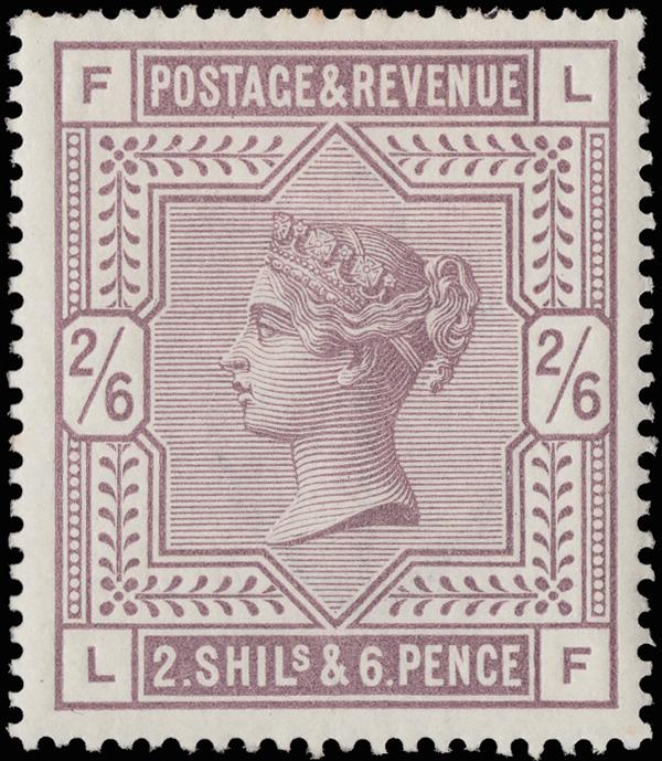 1883, Queen Victoria, 2s6d lilac on white paper, Anchor watermark (Scott 96), fresh and beautifully centered, o.g., hinge remnant, Very Fine to Extremely Fine. SG 178; £600 ($800). Scott $700. (Image)