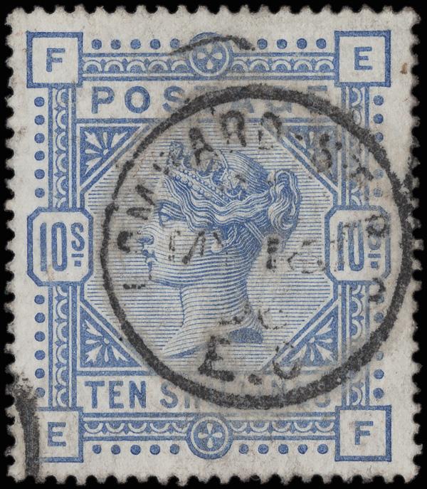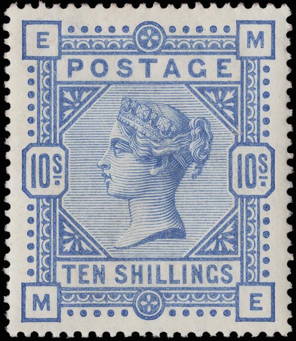 1884, Queen Victoria, 10s ultramarine on white paper, Anchor watermark (Scott 109), a marvelous mint example, o.g., hinge remnant; fresh a bright and beautifully centered, Extremely Fine. A real beauty! with a 2024 P.F. certificate. SG 183; £2,250 ($3,000). Scott $2,625. (Image)