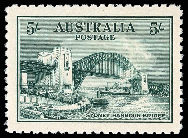 1932, 5s Sydney Bridge (Scott 132), o.g., never hinged, Post Office fresh and sound, well centered amid large margins, Very Fine. SG 143. Scott $1,300. (Image)