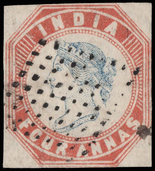 1854, Queen Victoria Lithographed, Head I, Frame I, 4a blue & pale red (Scott 6), fresh and neatly canceled with clear margins, Fine, with a 2024 P.F. certificate. SG 18; £1,400 ($1,870). Scott $1,075. (Image)