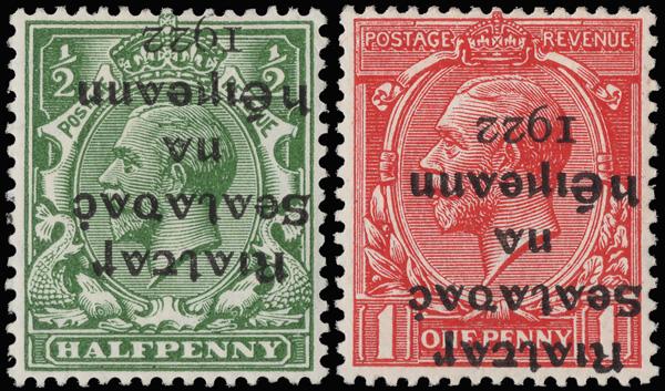 1922, Dollard Provisional Govt. overprint on King George V, ½d green, overprint inverted (Scott 1a, 2a), o.g., 1d never hinged, fresh and remarkably well centered, Extremely Fine. SG 1a, 2a. Scott $1,075. (Image)