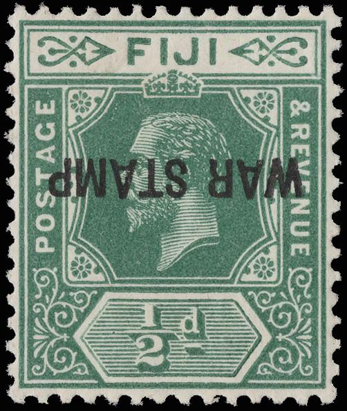 War Tax, 1915, ½d green, overprint inverted (Scott MR1a), o.g., very lightly hinged, bright, fresh and virtually perfectly centered, Extremely Fine to Superb, with a 2019 P.S.E. certificate graded XF-SUP 95. SG 138c; £550 ($730). Scott $700. (Image)