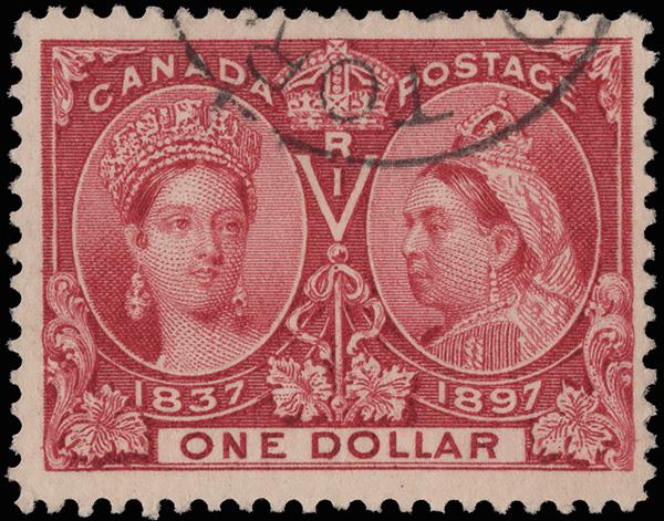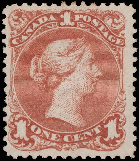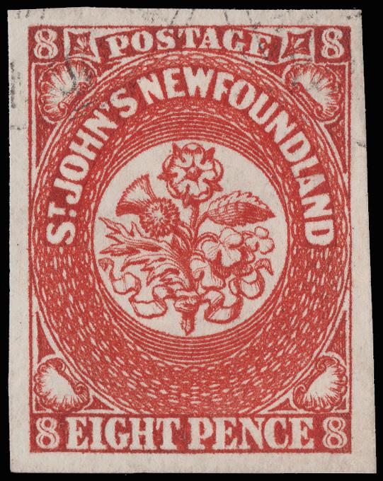 1857, 1s scarlet vermilion (Scott 9), a marvelous used example with large, balanced margins and a neat grid cancel, Very Fine. An exceptional example of this highly sought-after high value., with a 1961 P.F. certificate. Scott $9,500. (Image)