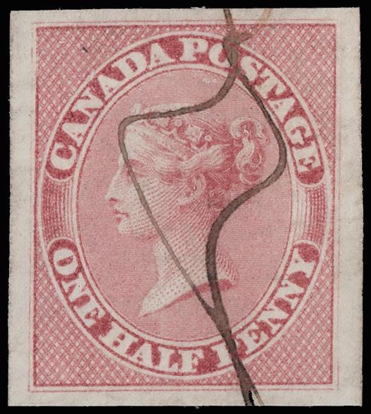 1857, Queen Victoria, ½d rose, imperforate (Scott 8), generous, well balanced margins and neat manuscript cancel, Extremely Fine. Scott $700. (Image)