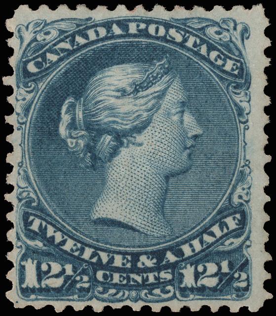 1868, Large Queen, 12½¢ blue (Scott 28), o.g., mounting remnant, exceptionally deep, rich color, Fine to Very Fine. Scott $1,750. (Image)