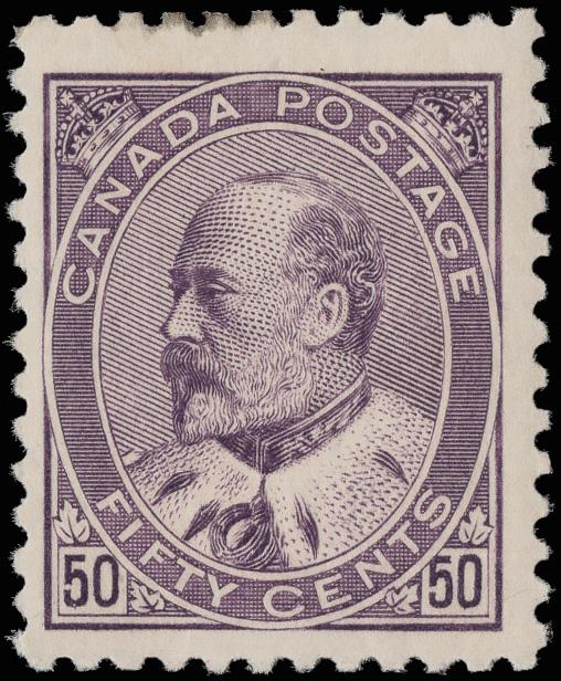 1903-08, King Edward VII, 1¢ to 50¢ complete (Scott 89-95), a reasonable set, o.g., few hinge remnants; 2¢ with a couple toned perfs, the 50¢—probably the best-centered of the group— has three gum-soaked perfs at the top, otherwise just Fine to otherwise Fine to F-VF, 50¢ with a 2024 P.F. certificate. Scott $3,265. (Image)