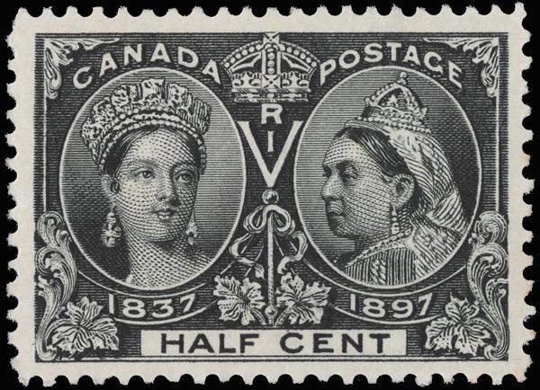 1897, Queen Victoria Jubilee, ½¢ black (Scott 50), o.g., never hinged, fresh and virtually perfectly centered, Extremely Fine, with a 2019 P.S.E. certificate graded XF 90. SMQ XF 90; $375. Scott $275. (Image)