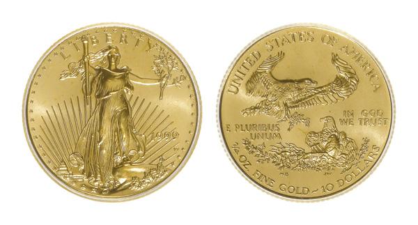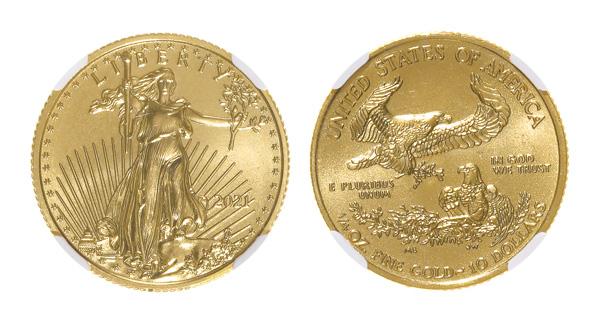 2021, $10 Gold Eagle, NGC MS70 Family Of Eagles T-1, ¼ Oz of .9999 gold.; slab signed by US Mint Lead Sculptor Ret. Don Everhart, NGC graded Mint State 70. (Image)