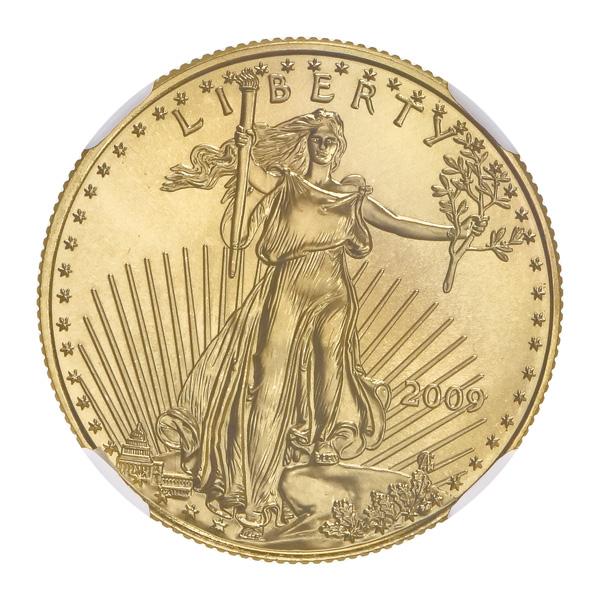 2009 $25 American Gold Eagle NGC MS70 Early Releases, NGC graded Mint State 70. (Image)