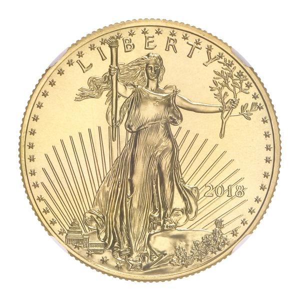 2018 $25 American Gold Eagle NGC MS70, NGC graded Mint State 70. (Image)