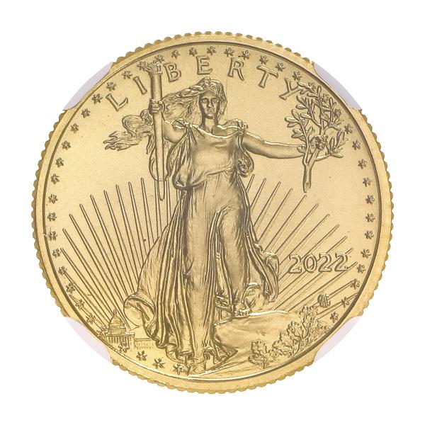 2022 $10 American Gold Eagle First Day Of Issue NGC MS70, From US Mint Sealed Box; Reagan Presidential Series, NGC graded Mint State 70. (Image)