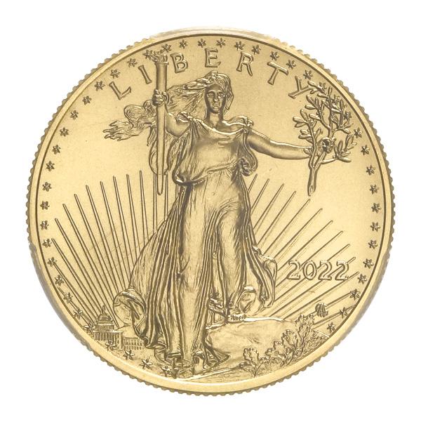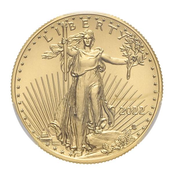 2022 $25 American Gold Eagle First Day Of Issue PCGS MS70, PCGS graded Mint State 70. (Image)