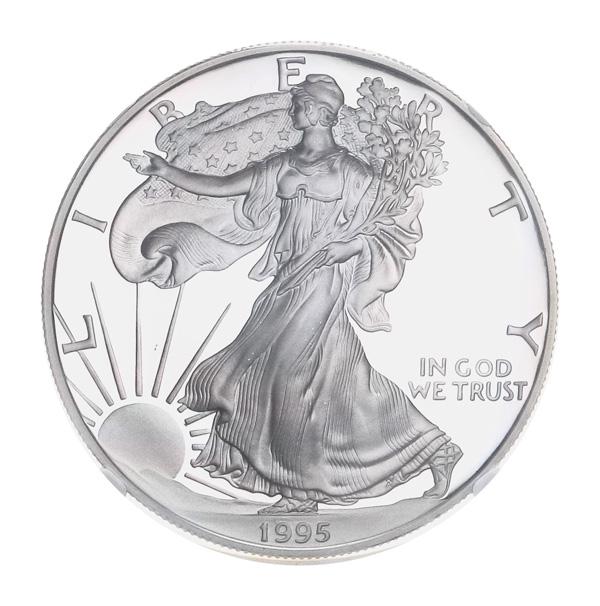 1995-W $1 American Silver Eagle NGC PF70 Ultra Cameo, NGC graded Proof 70 Ultra Cameo. (Image)