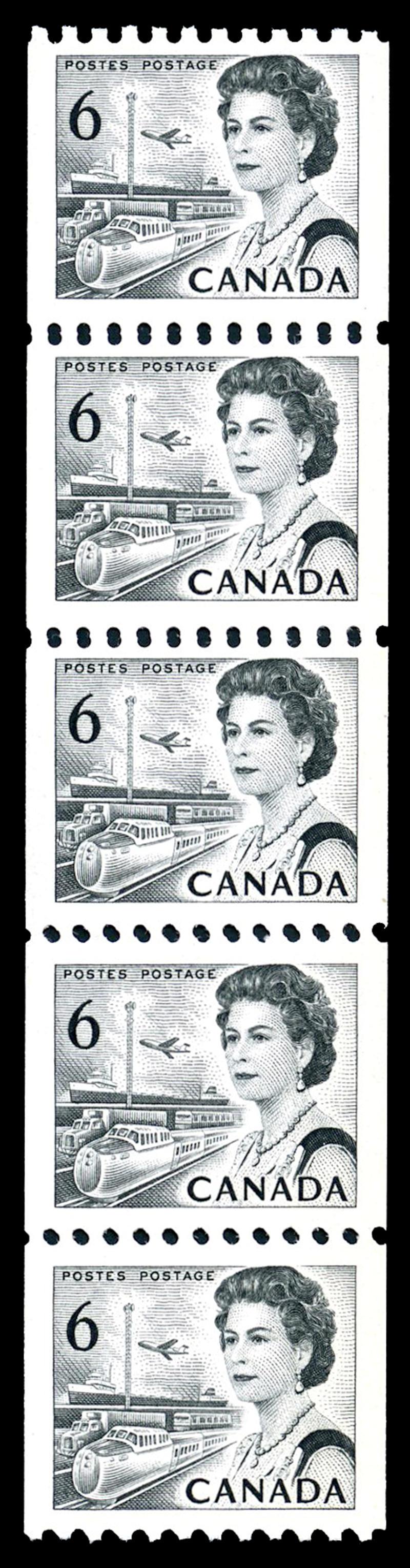 468B var: 6¢ black, HB strip of 5, with DOUBLE PERFORATIONS between, nh, very fine, including Bileski write-up. 2025 Greene Cert. (Image)