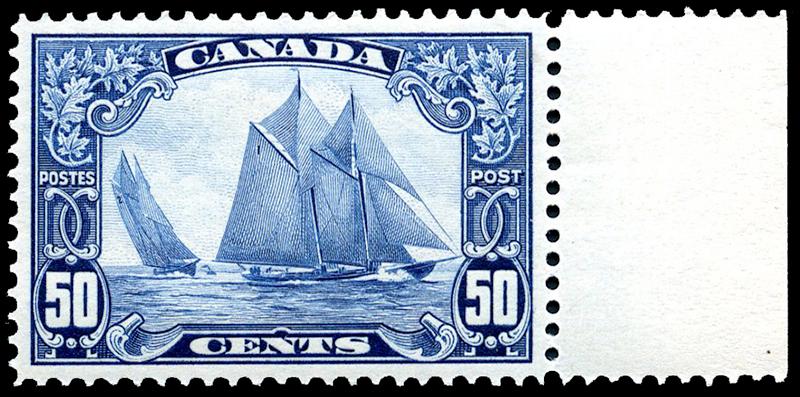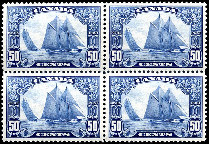 158: 50¢ Bluenose, block of 4, very fine, bottom 2 stamps nh. (Image)