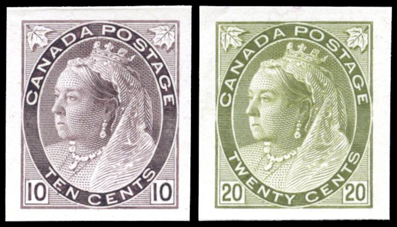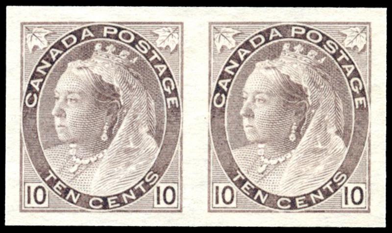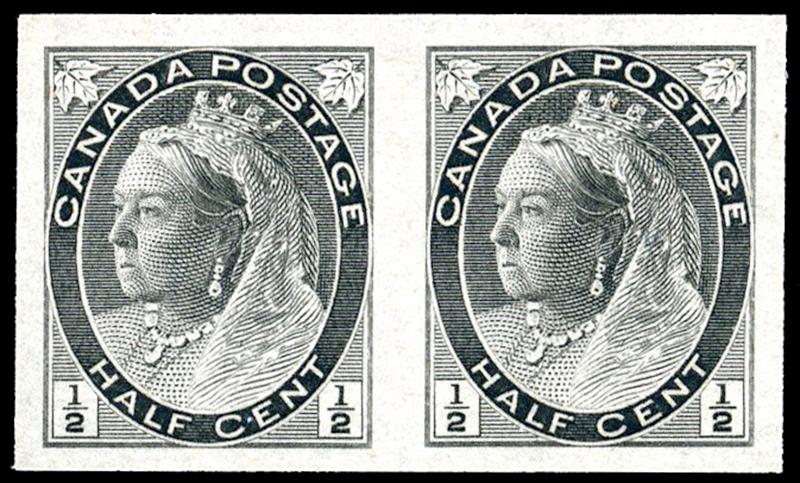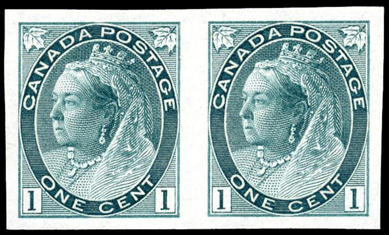 75a: ONE CENT: GREY GREEN, IMPERFORATE PAIR, og, very fine (Image)