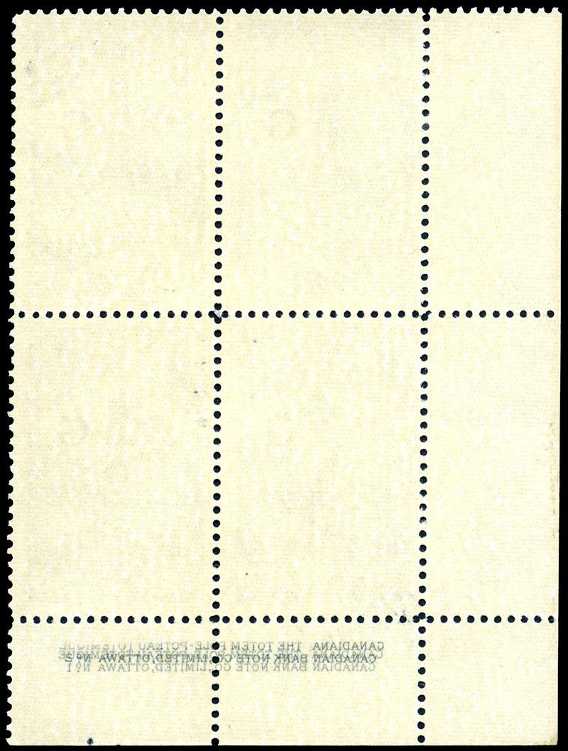 O32var: $1 Totem, G overprint, LL Pl 2 inscription block of 4 with STRIKING OFFSET of full Plate 1 and Plate inscription on gum side of selvedge, nh, very fine. (Image)