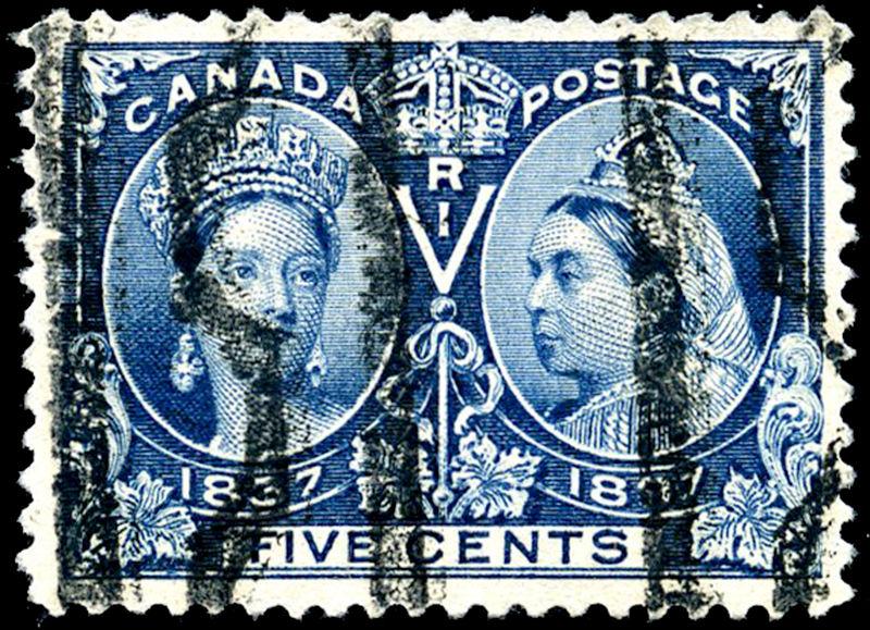 STYLE U: 54xx: FIVE CENT: DEEP BLUE, vertical, very fine. (Image)