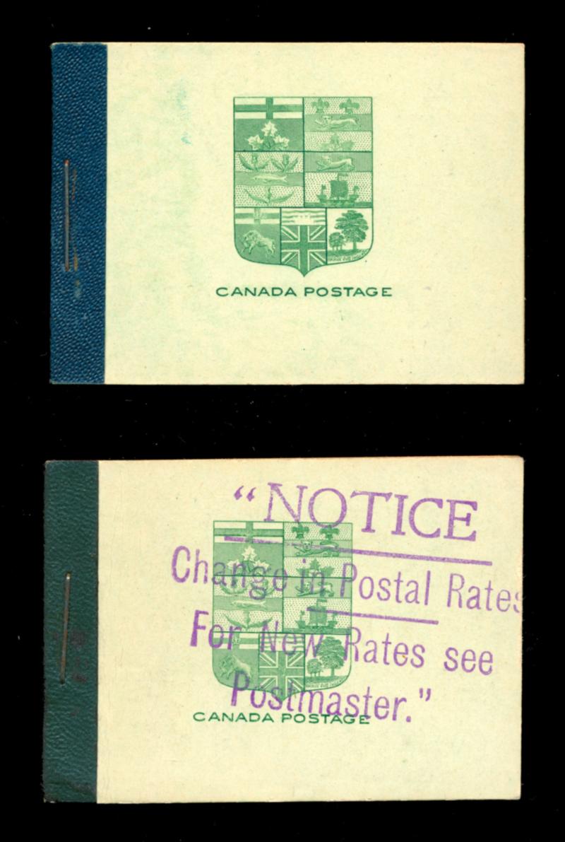 CANADA 1913 #BK3c + BK3e BOOKLETS F-VF **. King George V Admiral issue, selection of 2 complete English booklets of 4 panes of 6 stamps of the 1c yellow green with different covers. Unitrade $500.00. (Image1)