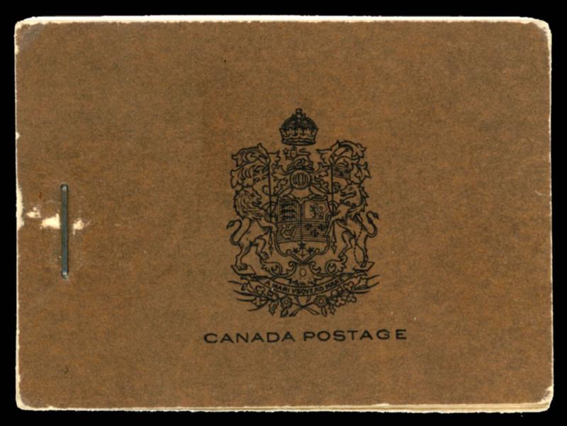 CANADA 1929 #BK13a ENGLISH BOOKLET F-VF **. King George V Scroll issue, complete English booklet of 6 panes of 6 stamps, 1c yellow (3 panes), 2c green (2 panes) and 5c violet (1 pane). Unitrade $800.00. (Image1)