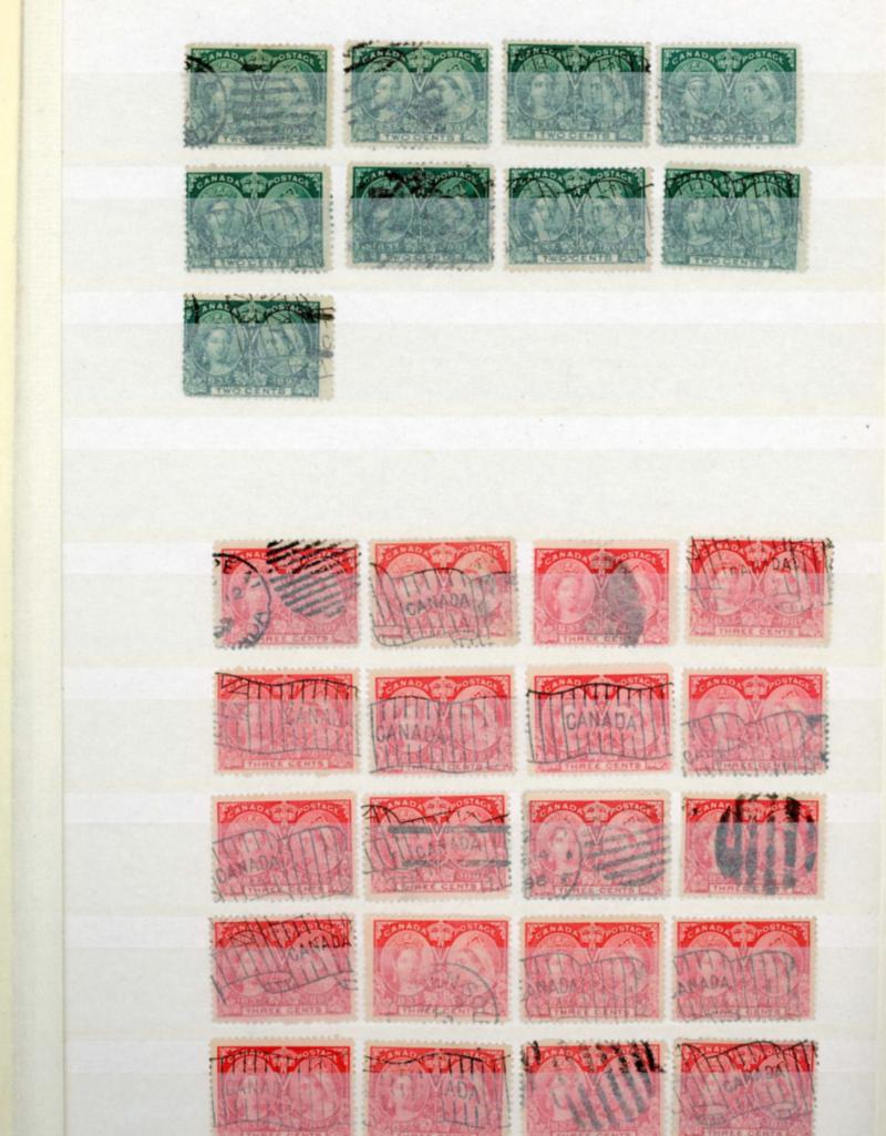 CANADA 1898-1930 ACCUMULATION STAMPS F-VF /O. Stockbook containing 2350 used stamps. Stamps are in order of catalog between numbers 52 and 168. Huge duplication. Interesting for cancellations and color shades. Need to ne look at. Starting bid $130.00. (Image1)