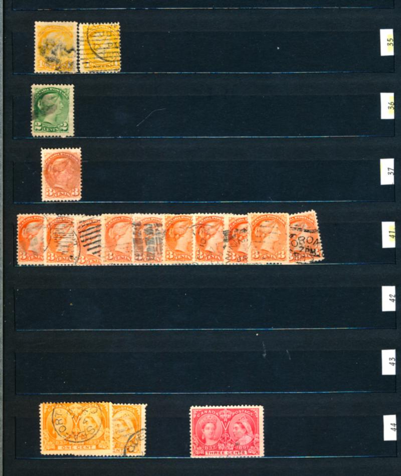CANADA 1859-1946 ACCUMULATION STAMPS F /O. Accumulation of 1764 used stamps all identified with Unitrade numbers. The stamps laid down horizontally or vertically are defectives and are not counted (489 stamps), the other 1275 stamps have a catalog (Unitrade fine) value of $3900.00. Need to be checked. Starting bid $150.00. (Image1)