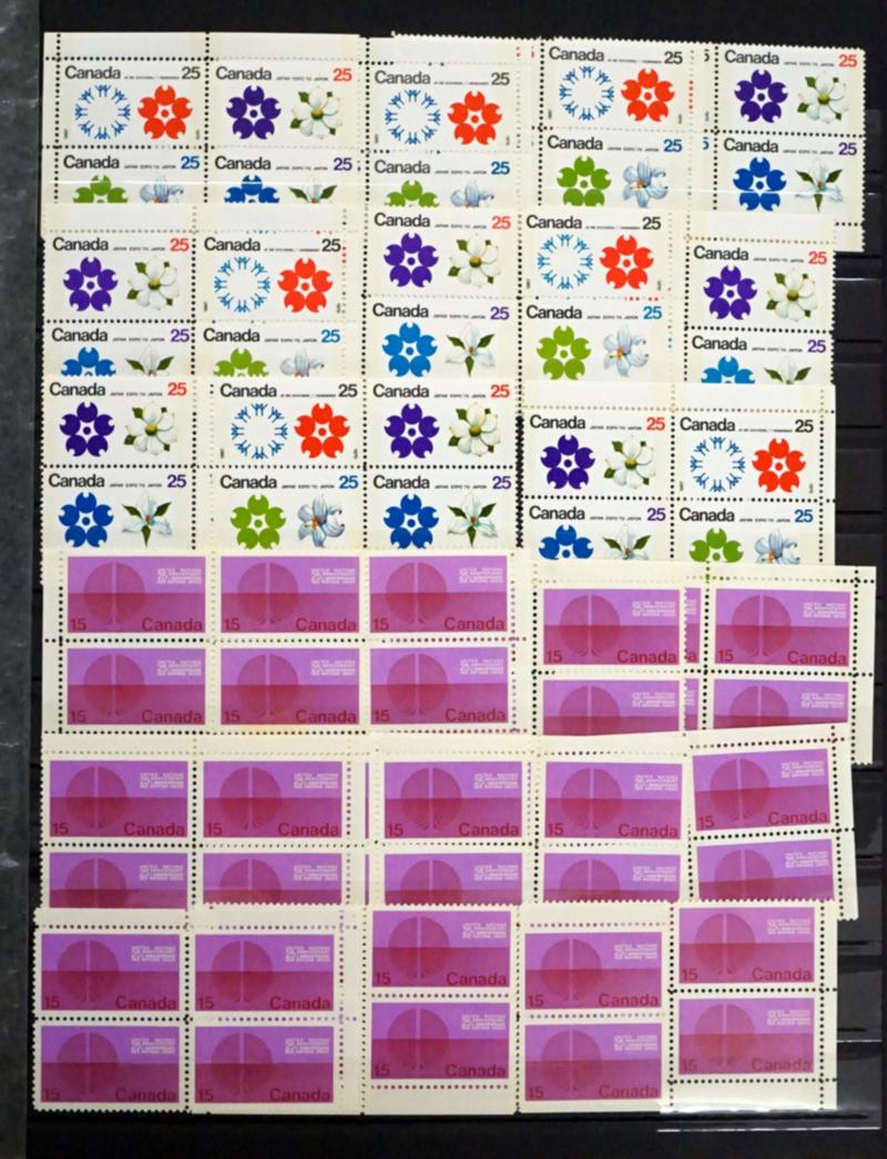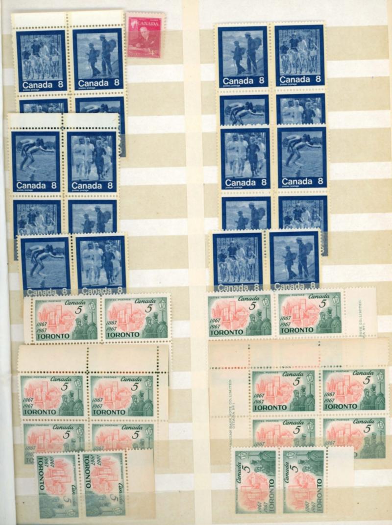 CANADA FACE VALUE ACCUMULATION STAMPS VF **. Stockbook containing mint never hinged tagged stamps mostly all in blocks or corner blocks. Large duplication. Total face value is $582.86. (Image1)